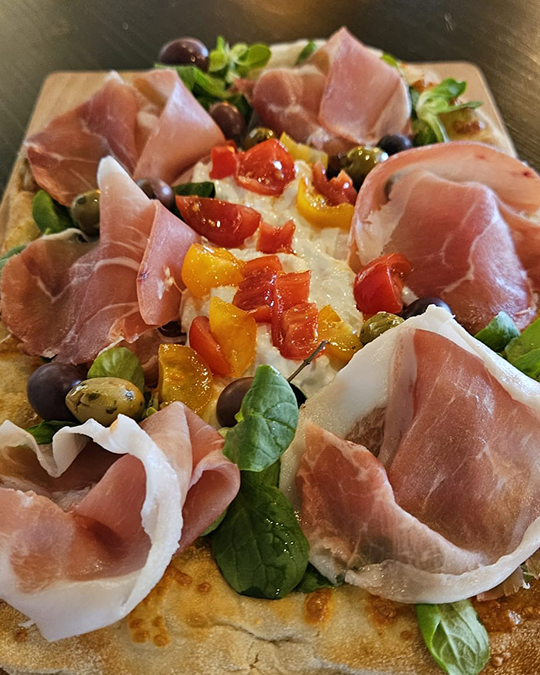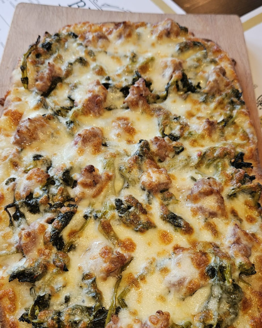 Poi arriva lei: la pinsa Carrettiera. Friarelli croccanti che ricordano le domeniche in famiglia, salsiccia che si sbriciola appena la mordi, e mozzarella che fa da collante a tutto quel tripudio di sapori. “Ma è meglio della pizza?” chiedi. Quelli che l’hanno già provata ridono e dicono: “Non farti domande. Mangia.”