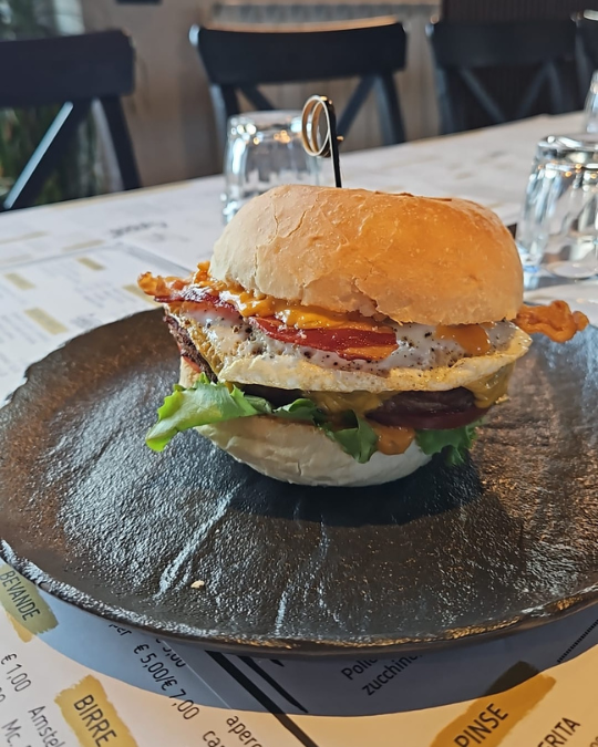 Qualcuno al tavolo ordina il Corno Grande, e per un attimo tutti zittiscono. Bacon che scrocchia come foglie secche, cheddar che si allunga in fili dorati e salsa barbecue che potrebbe far innamorare persino un vegano. “Lo condividiamo?” qualcuno propone. La risposta è un coro di “NO”, perché certe cose non si dividono.
