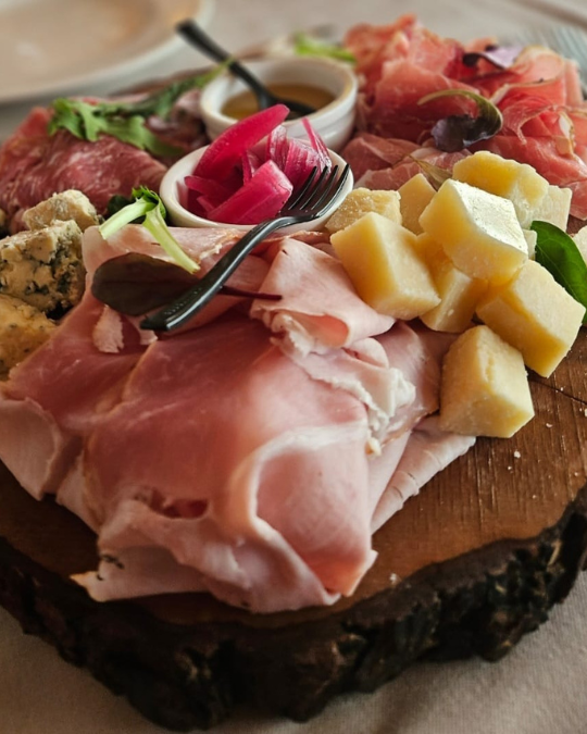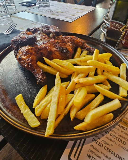 Mentre sorseggi un Inferi Montepulciano, un vino così corposo che quasi ti chiedi se sta per raccontarti una storia, qualcuno inizia a parlare di quel viaggio finito in una notte insonne… Tu intanto pensi alla tagliata di manzo che hai appena finito: carne così tenera che quasi ti dispiace averla mangiata, rucola fresca e scaglie di grana che si sciolgono come neve.