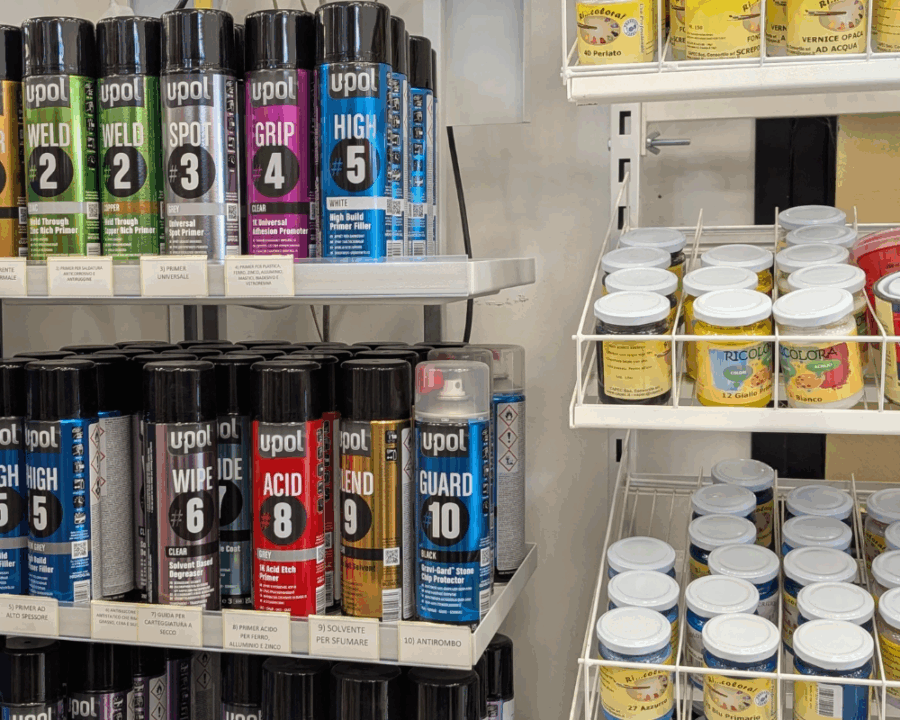Selezioniamo utensili progettati per l’uso quotidiano in officina: robusti, affidabili, collaudati da professionisti. Non soluzioni da banco, ma attrezzi che reggono ritmi sostenuti e restituiscono valore nel tempo. Lo stesso vale per le vernici: formulazioni tecniche studiate per garantire adesione stabile, copertura uniforme e resa estetica duratura, anche su superfici complesse. Disponibili sia in tinte standard che personalizzabili a campione, con il nostro supporto tecnico sempre a disposizione. Dalle lavorazioni su veicoli moderni a quelle su mezzi vintage o speciali, qui trovi ciò che serve per lavorare bene.