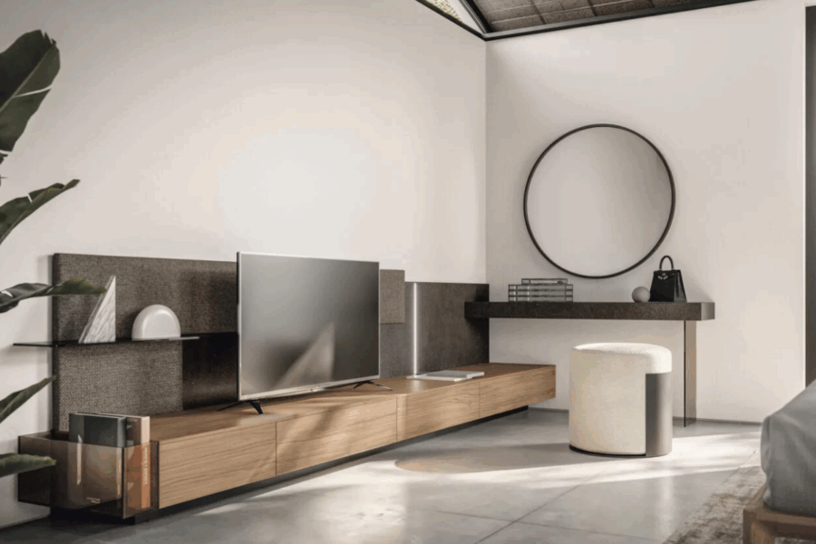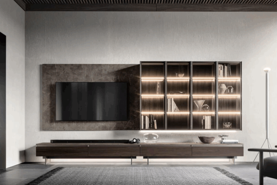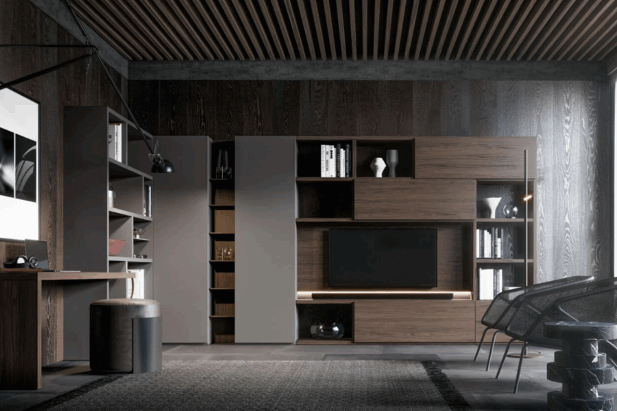 Funzionalità in primo piano, stile in ogni dettaglio. Geometrie essenziali, alternanza di pieni e vuoti e un’integrazione tecnologica impeccabile disegnano pareti attrezzate che organizzano lo spazio con intelligenza ed eleganza. Per un ambiente dove ogni cosa è in perfetto equilibrio, proprio come lo desideri.